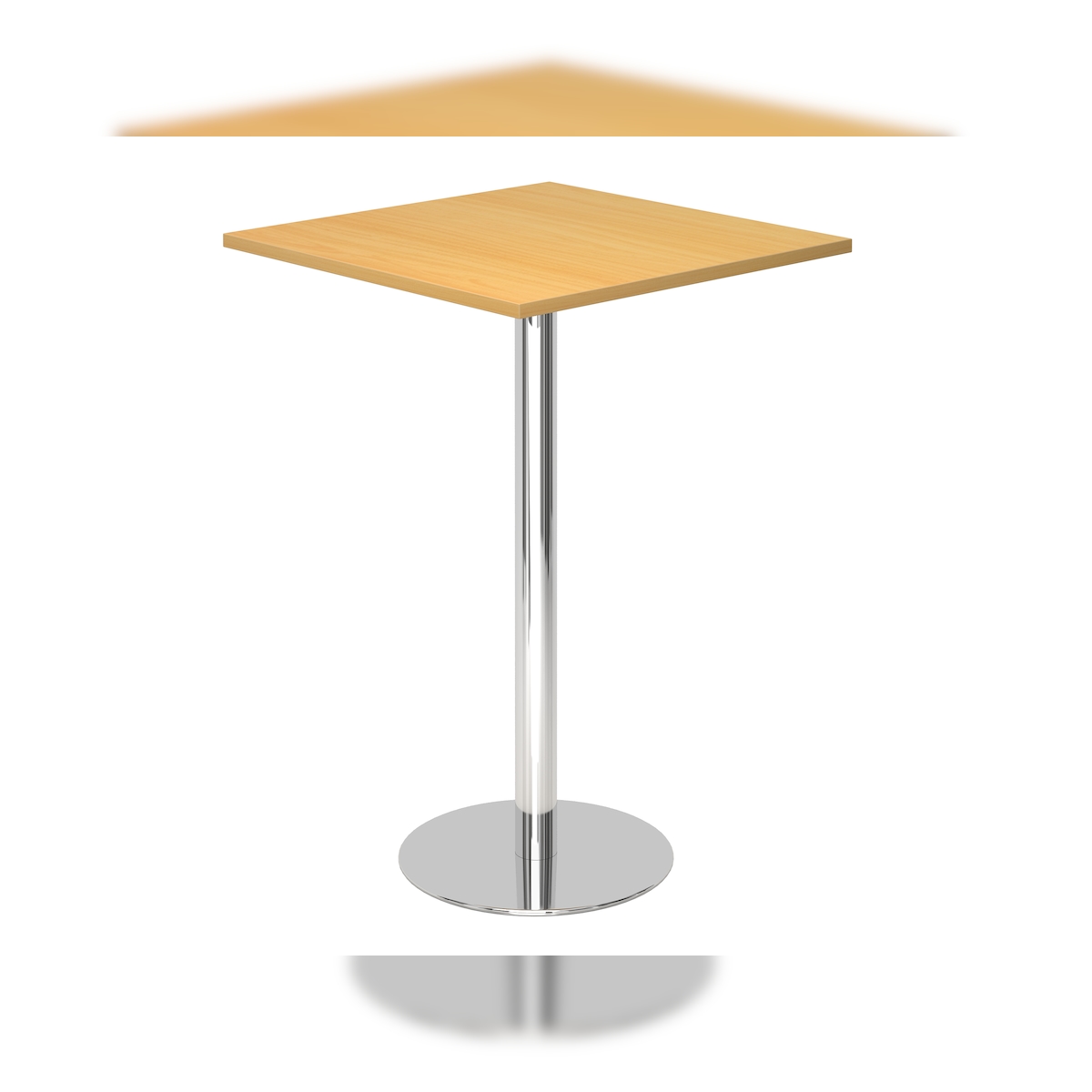 bümö Stehtisch Büro, Bistrotisch eckig 80 x 80 cm - Bartisch Eiche, Stehtisch Holz-Platte, Säule aus Metall verchromt, Buffettisch, Säulentisch,