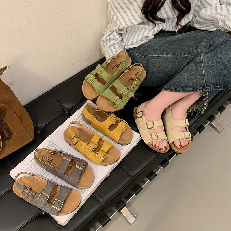 Yellow thick-soled Birkenstock thick-soled one-word sandals women's summer wear high-end cool slippers cm yellow