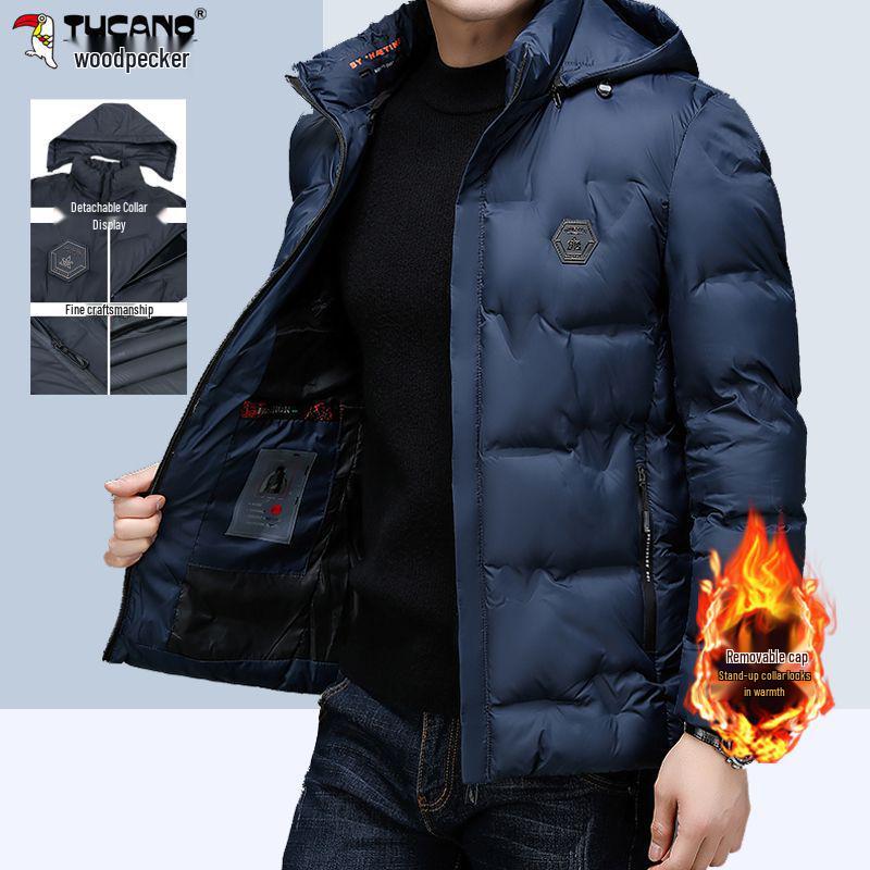 Woodpecker Men's Winter Down Jacket with Detachable Hood - Warm, Thick, for All Ages cm