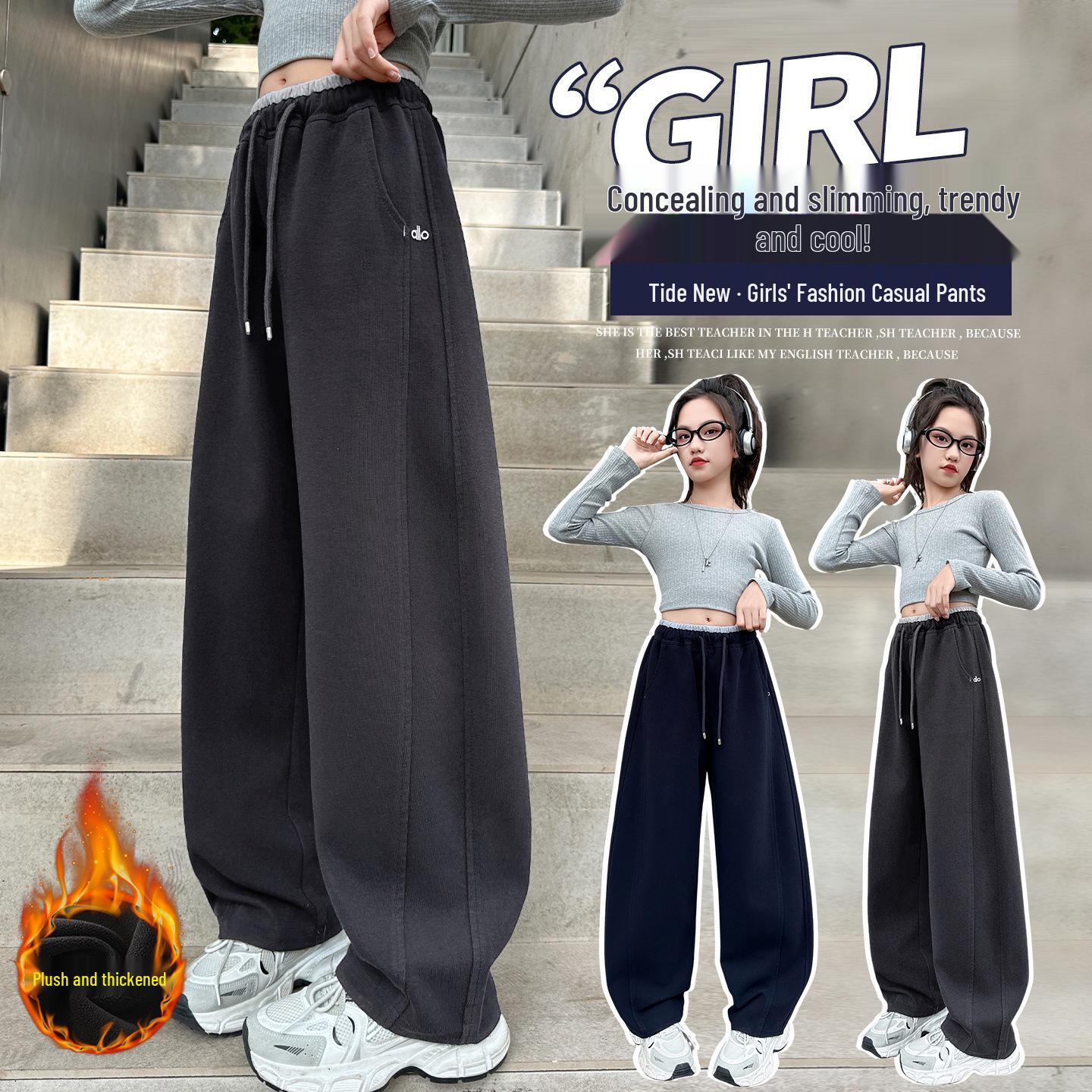 Girls' Fleece-Lined Autumn/Winter Scimitar Sweatpants - 2025 Fashion Trend, Big Kids Casual Sports Pants 150cm