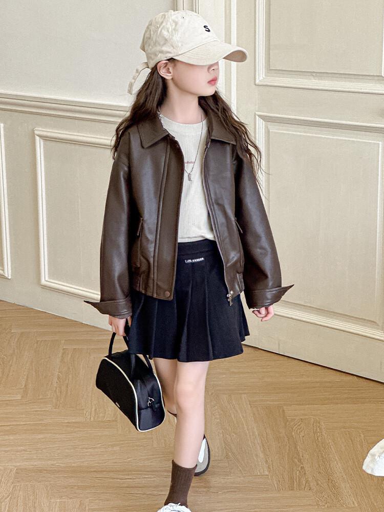 Girls' Trendy Leather Jacket - 2025 Spring/Autumn Street Style for Big Girls 170cm