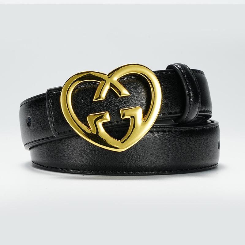 Genuine Leather Belt for Women's Thin Jeans Belt Decoration with Dress Trousers Simple Ins Style Fashionable Heart Belt