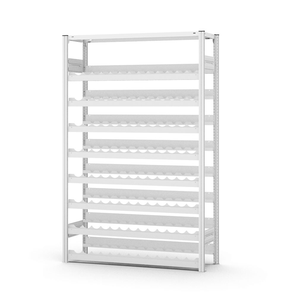 PROREGAL Weinregal Stecksystem T-Profil | HxBxT 200x130x30cm | Fachlast 35kg | 8 Ebenen für 200 Flaschen | Lichtgrau | Flaschenregal Weinständer