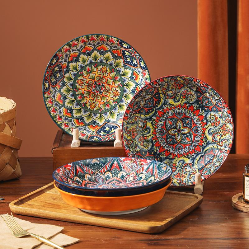 Bohemian Disc Mixed Color Underglaze Color Deep Plate Home Restaurant High Temperature Resistant 8 Inch Plate Combination