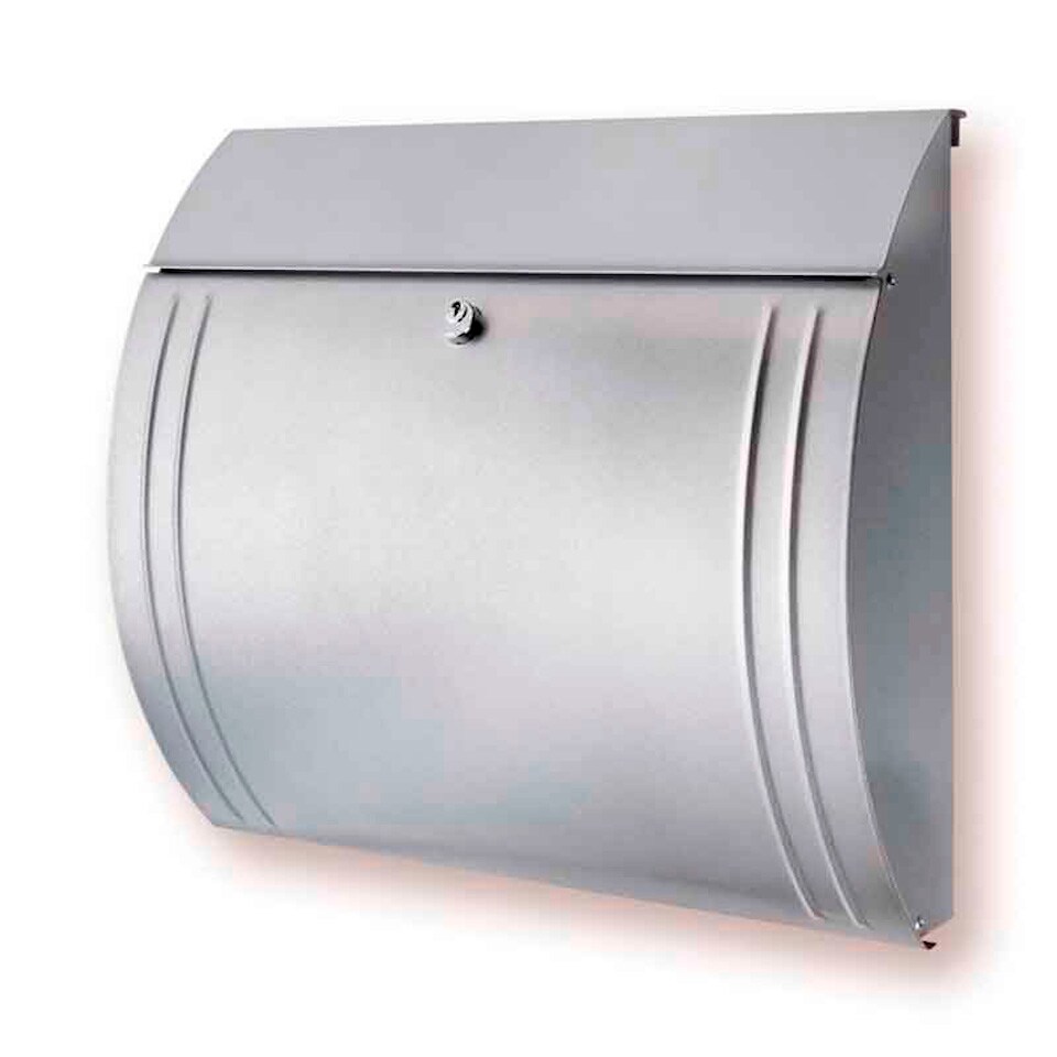 PROREGAL Eleganter Briefkasten Modena aus verzinkten Stahl | 15,3 Liter, HxBxT 33,5x36x12,7cm | Einwurföffnung 32,5x33cm | Silber