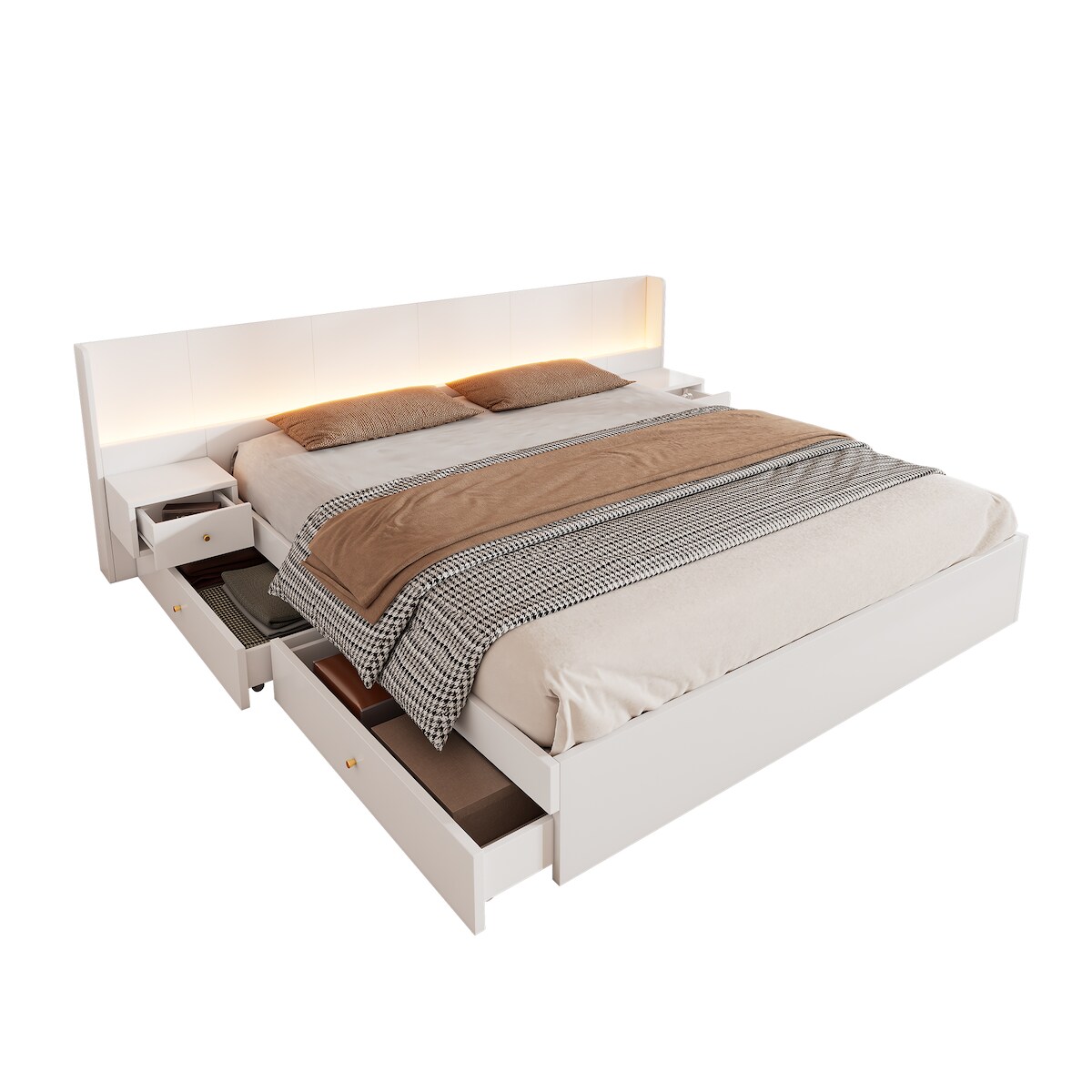 Merax Doppelbett 180x200cm, Holzbett mit USB, LED, Steckdose & App-Steuerung, inkl. 2 Nachttischen mit Schubladen, weiß