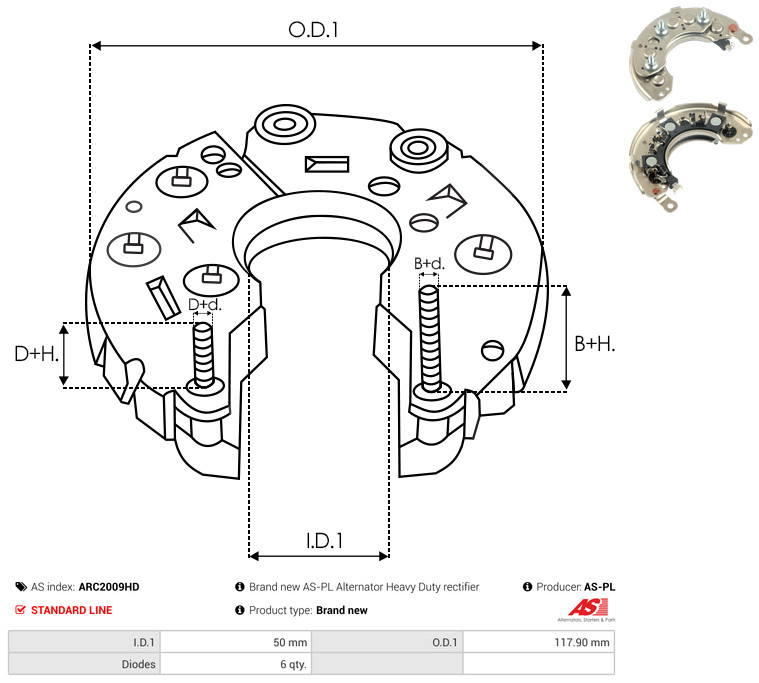 AS-PL Gleichrichter, Generator ARC2009HD Universal 117,90mm für NISSAN 23230-V7200 23245-V7200 23232-10G00