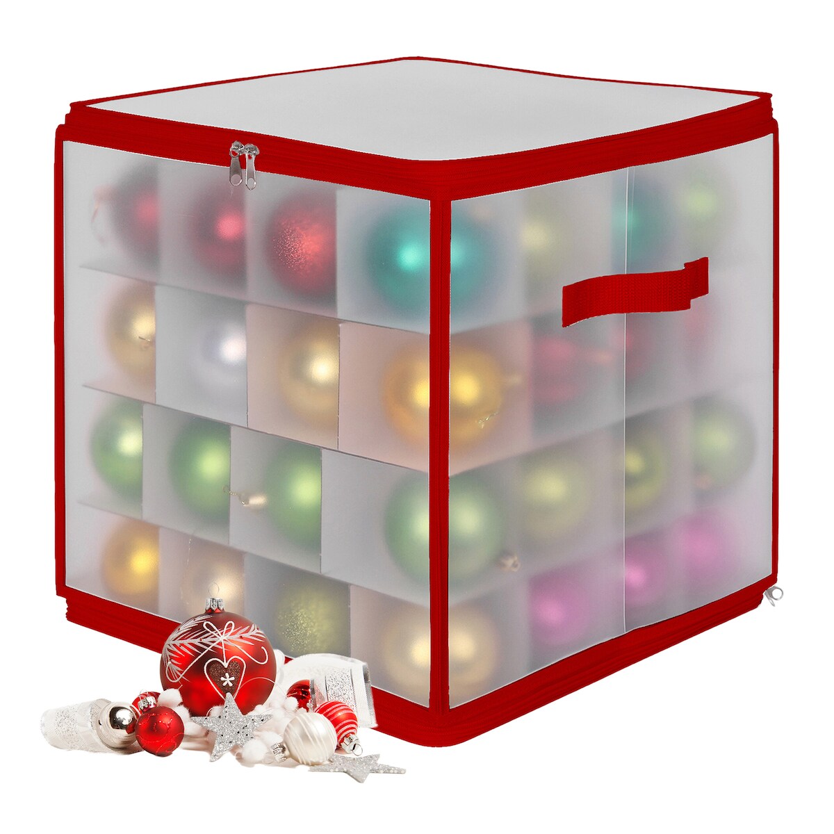 Relaxdays Weihnachtskugel Aufbewahrungsbox, 64 Kugeln, HxBxT: 36x36x36 cm, Kunststoff, Pappe, Kugelbox, transparent/rot