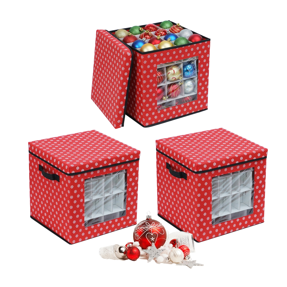 Relaxdays Weihnachtskugel Aufbewahrungsbox, 3er Set, HBT: 33 x 33 x 33 cm, Vlies, Pappe, Weihnachtskugelkiste, rot/weiß