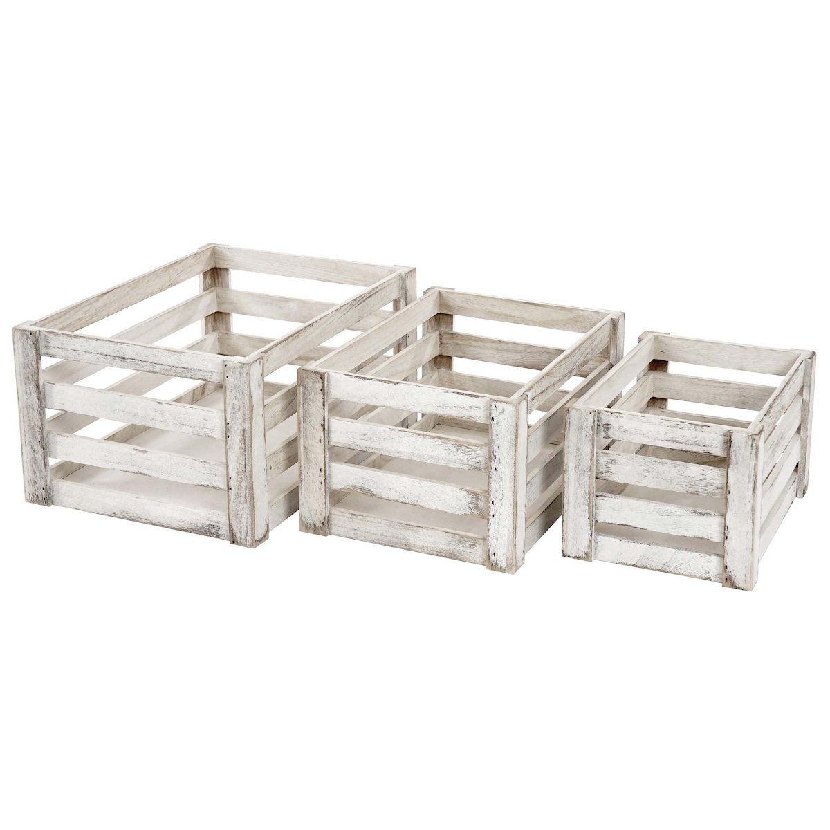 Mendler 3er Set Holzkiste HWC-C56, Weinkiste Dekokiste Aufbewahrungskiste Obstkiste, Shabby-Look Vintage ~ weiß, shabby