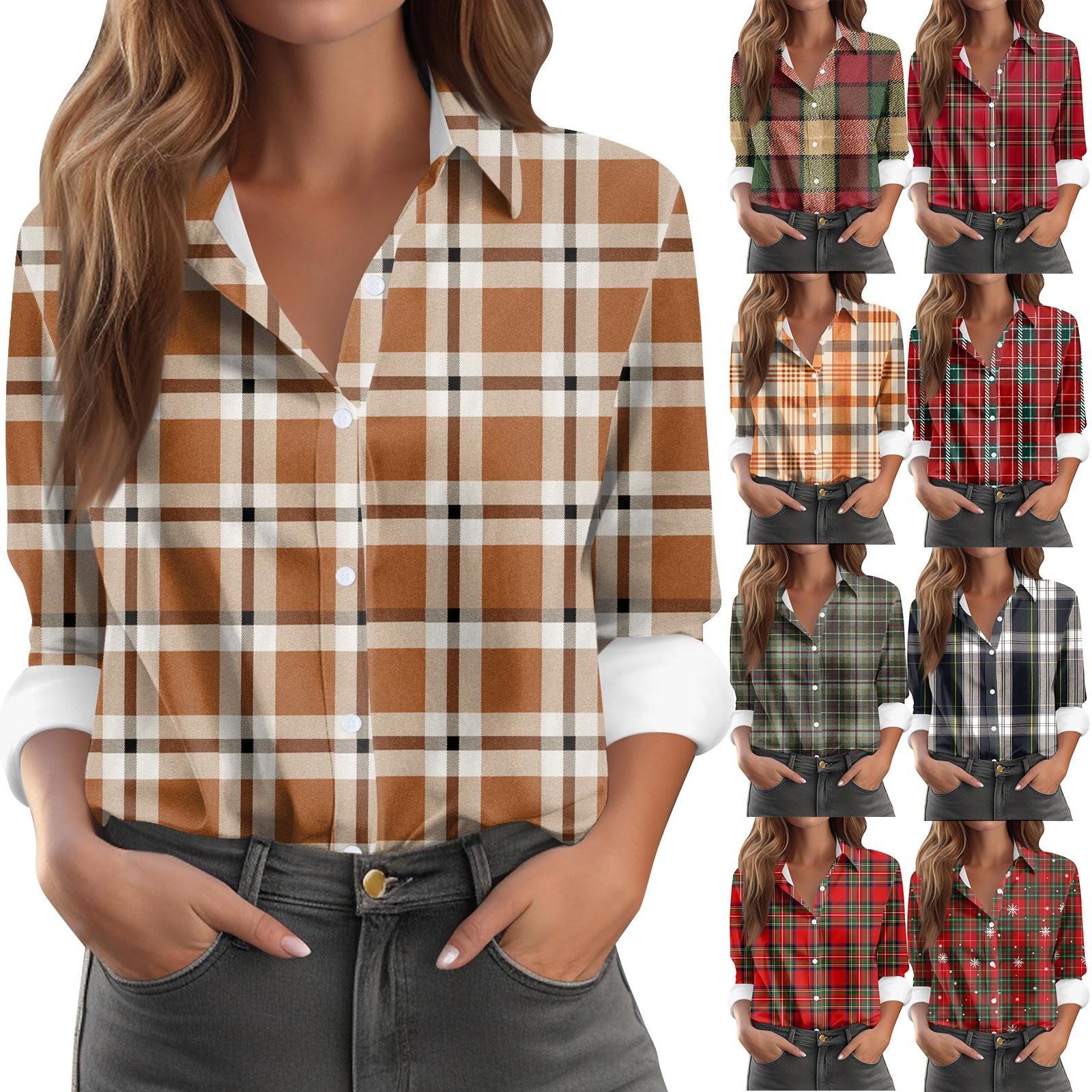 Women's Shirt Blouse Print Button Long Sleeve Casual Basic Shirt Collar Regular Top cm wine