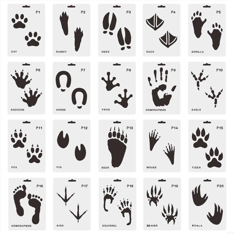 KX4B 20 Stück/Set Tierpfoten-Schablonen Wiederverwendbare Pfotenabdruck-Schablonen Tierpfoten-Zeichenschablonen Wandkunst Basteln Heimdekoration