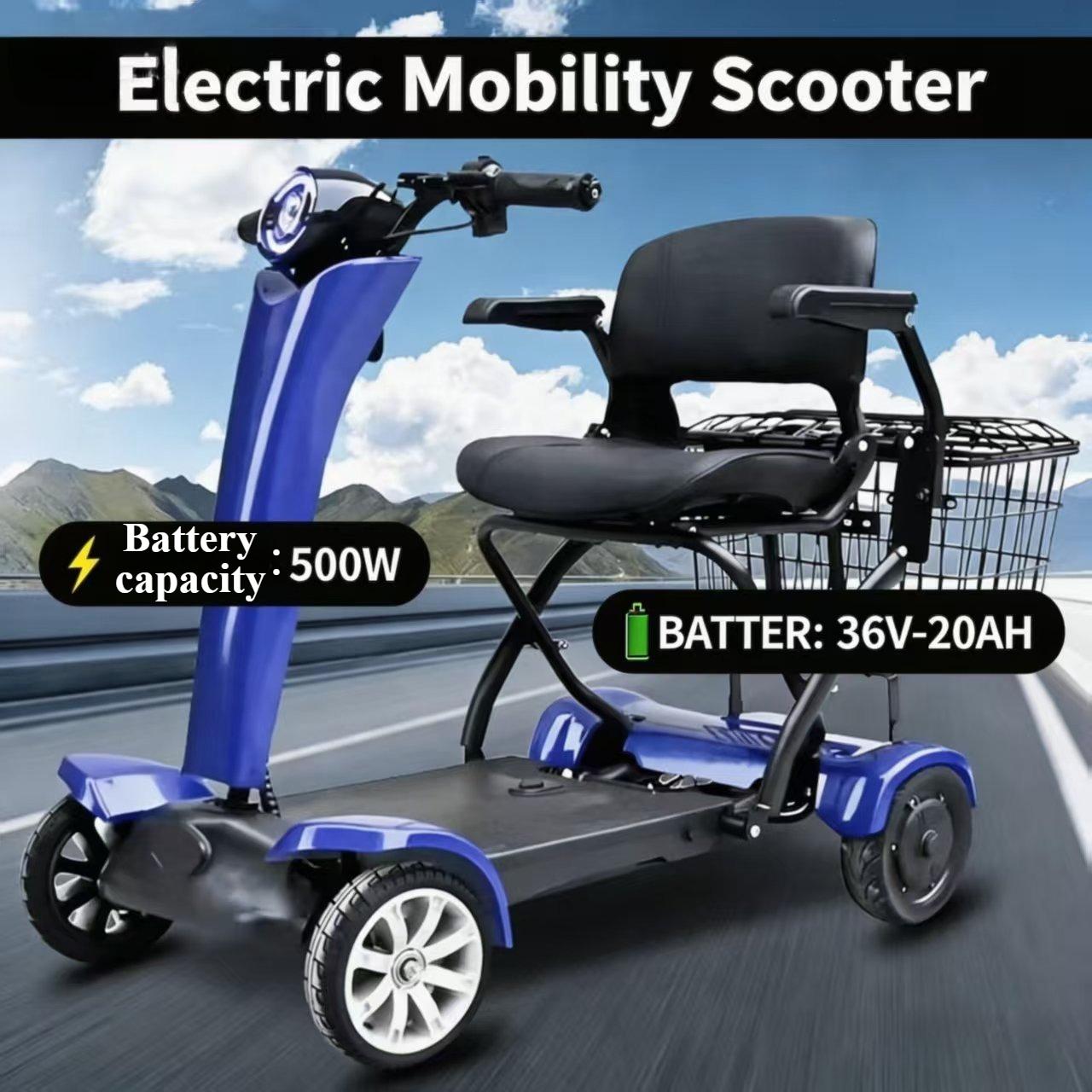 2026 EU-lager 4-hjulig dubbelmotor elektrisk automatisk vikbar mobilitet elektrisk vikbar rullstolsskoter blå