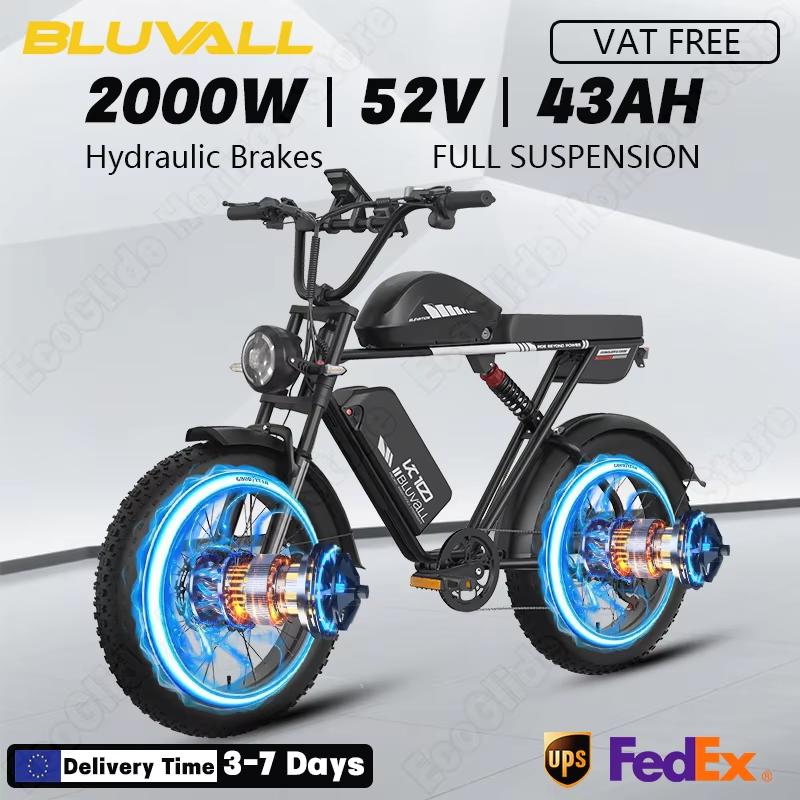Nieuwe K10 elektrische fiets met 2000W dubbele motor, 52V 43Ah dubbele accu, 20 inch (10,2 cm) dikke banden, hydraulische remmen en cruise-modus. zwar
