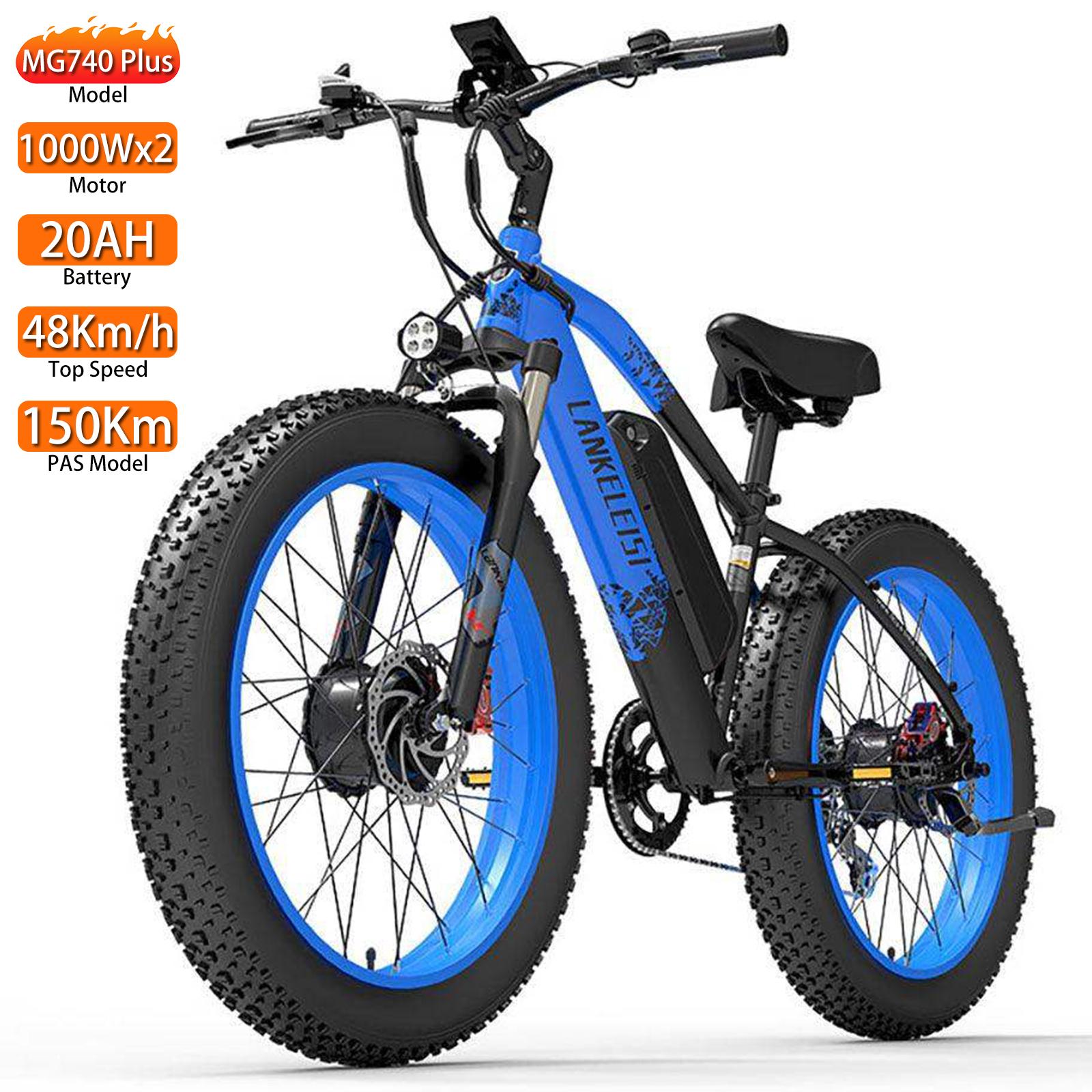 Vélo Électrique Tout Terrain Lankeleisi 26 Moteur 1000Wx2 Adulte VAE 48V 20AH Autonomie Max 150Km Charge 150Kg MG740 Plus bleu/noir