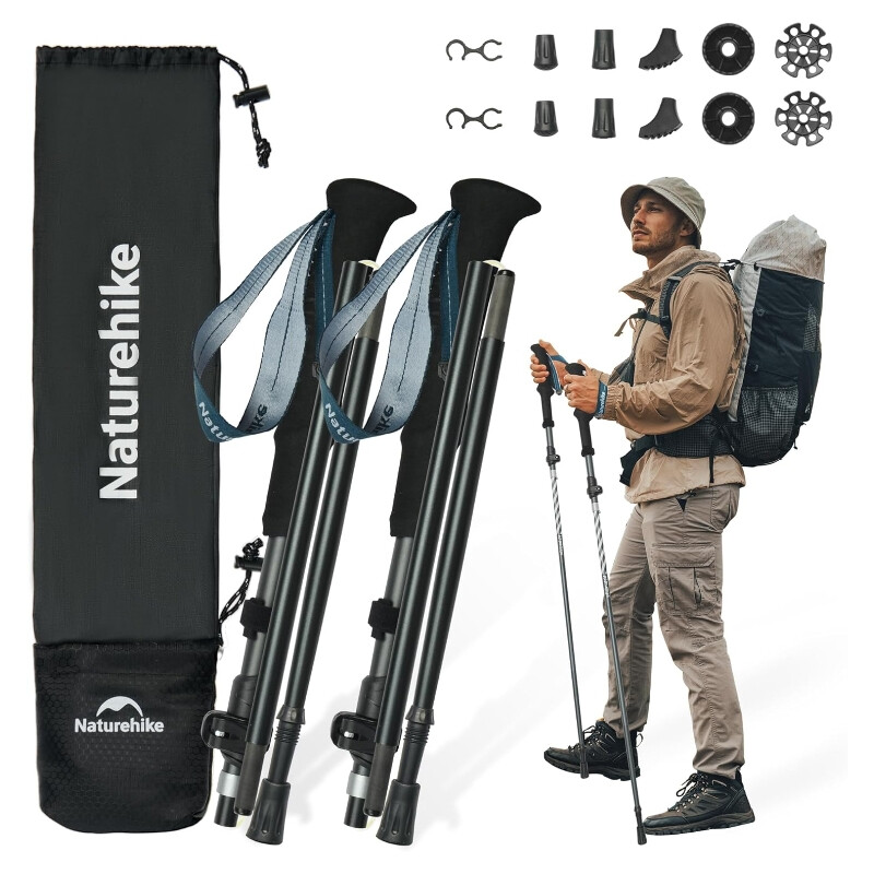 NatureHike 7075 Bâtons de randonnée pliables et réglables en aluminium ultralégers - 115 à 135 cm