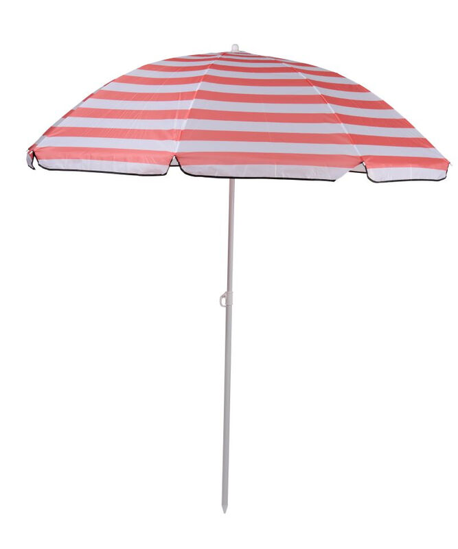 Camp Active Strand-Sonnenschirm mit Spitze ? 170 cm - Balkon-Sonnenschirm 2 m hoch - Sonnenschutz - Pink/Weiß gestreift