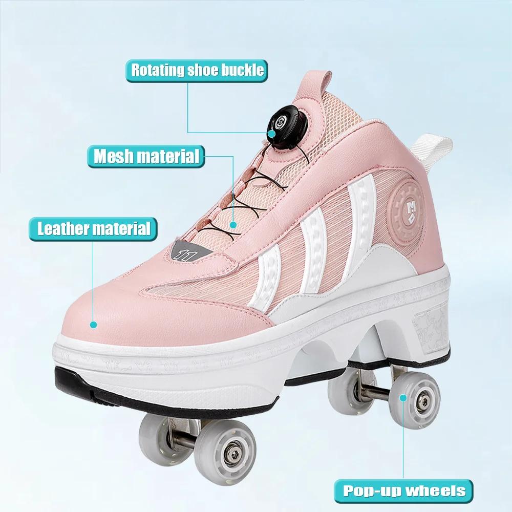 Deformasjon Rulleskøyter Sko Dobbel Rad 4-Hjuls Skøyter Rullesko med Hjul Dobbelt Formål Rullesneakers Skateboard Sko