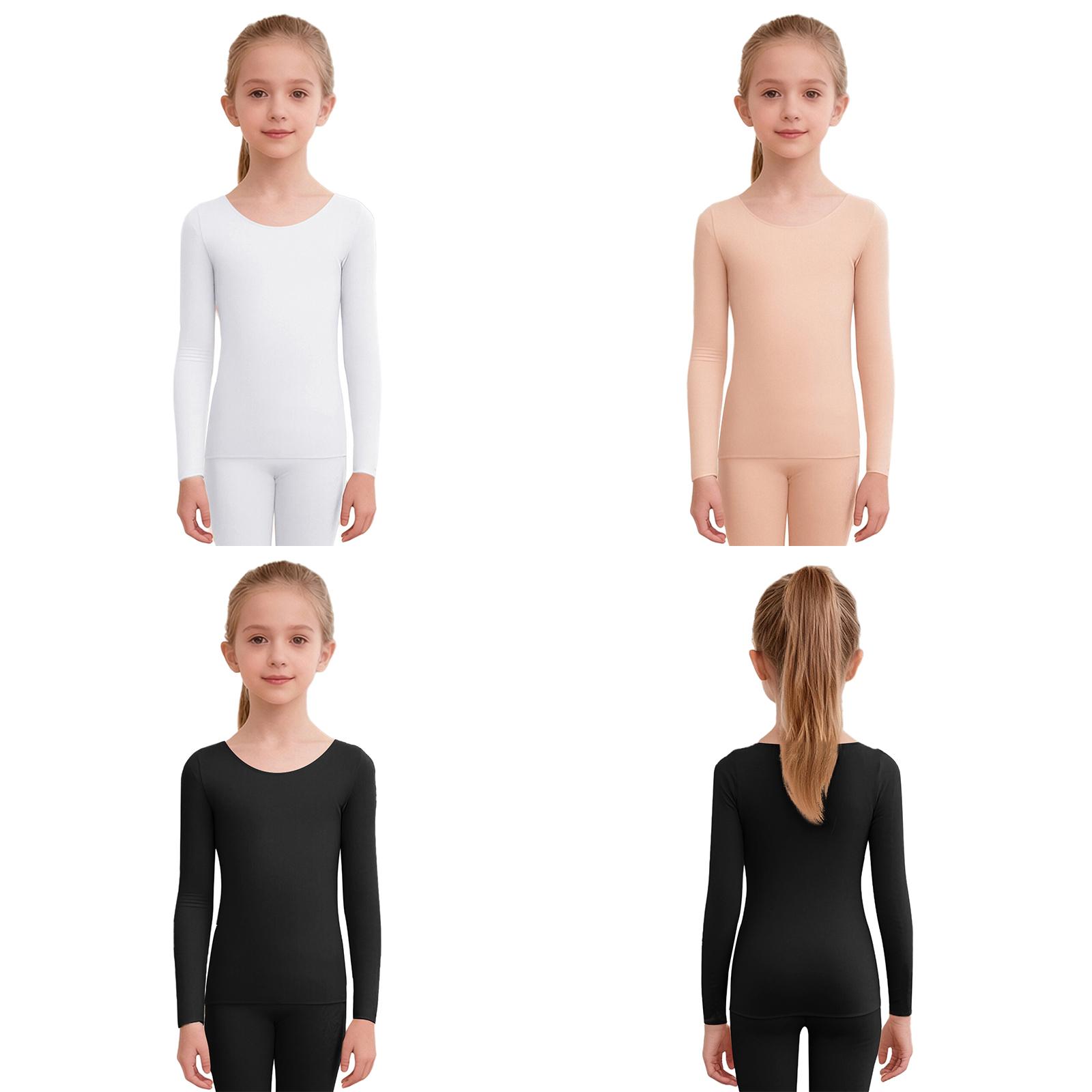 Naadloze Thermische Dans Top voor Kinderen Meisjes: Ronde hals lange mouwen opwarmtrui voor ballet, gymnastiektraining en de winter cm zwart