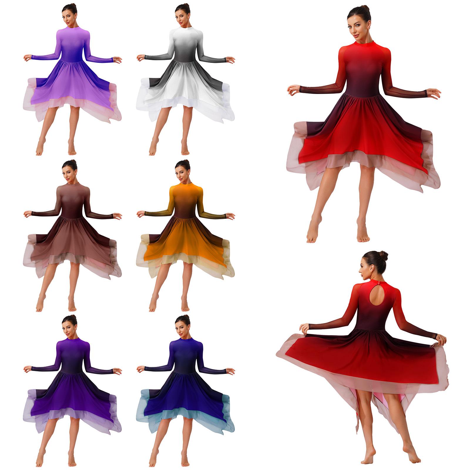 Kvinners lyrisk danse kjole gradient langermet mesh uregelmessig fald bak kunstløp performance trikot cm Svart