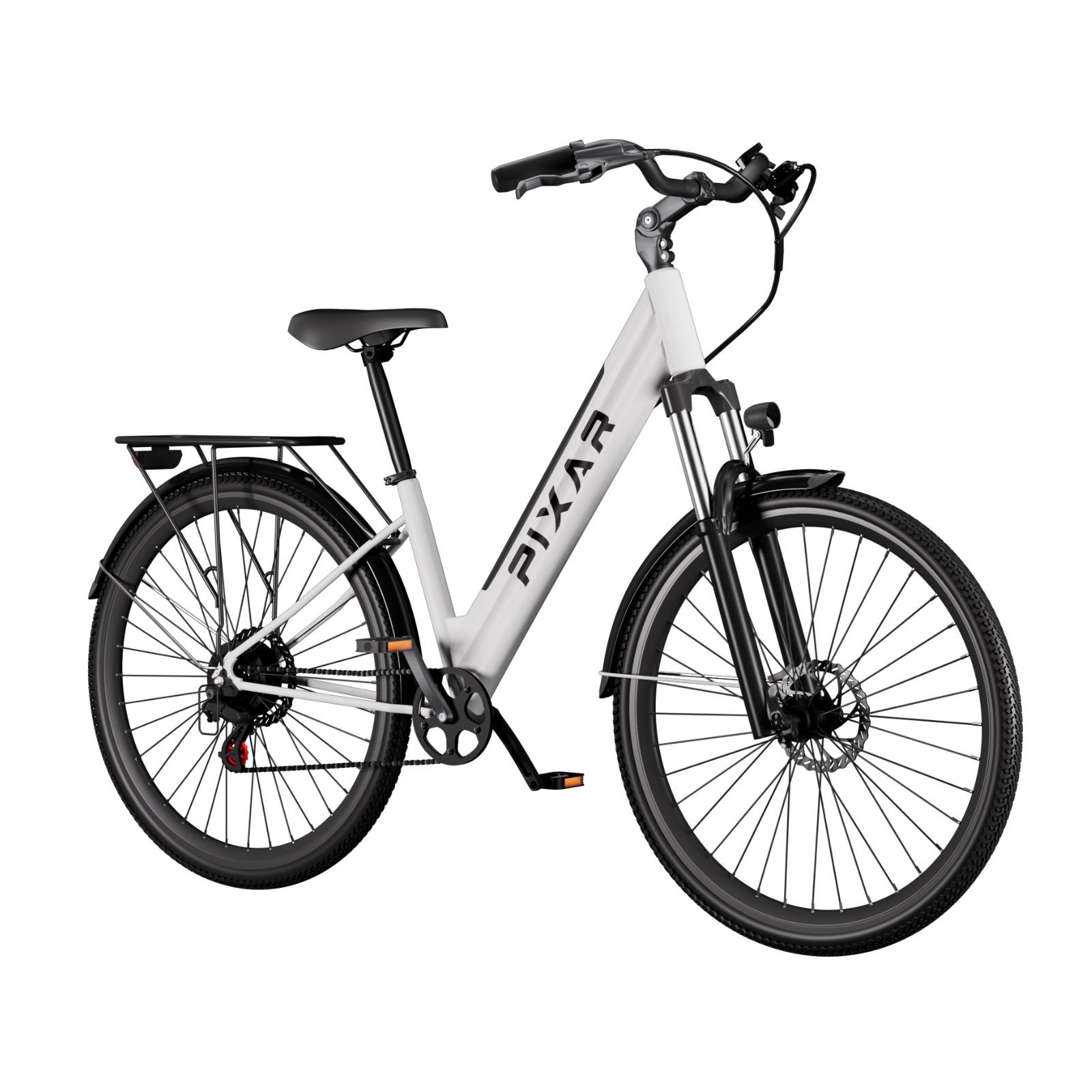 City Elektrofahrrad PIXAR Cruiser 27.5 Reifen 250W Motor 36V12.8Ah Akku Shimano 7 Gang 25km/h Geschwindigkeit 80km Max. Reichweite weiß