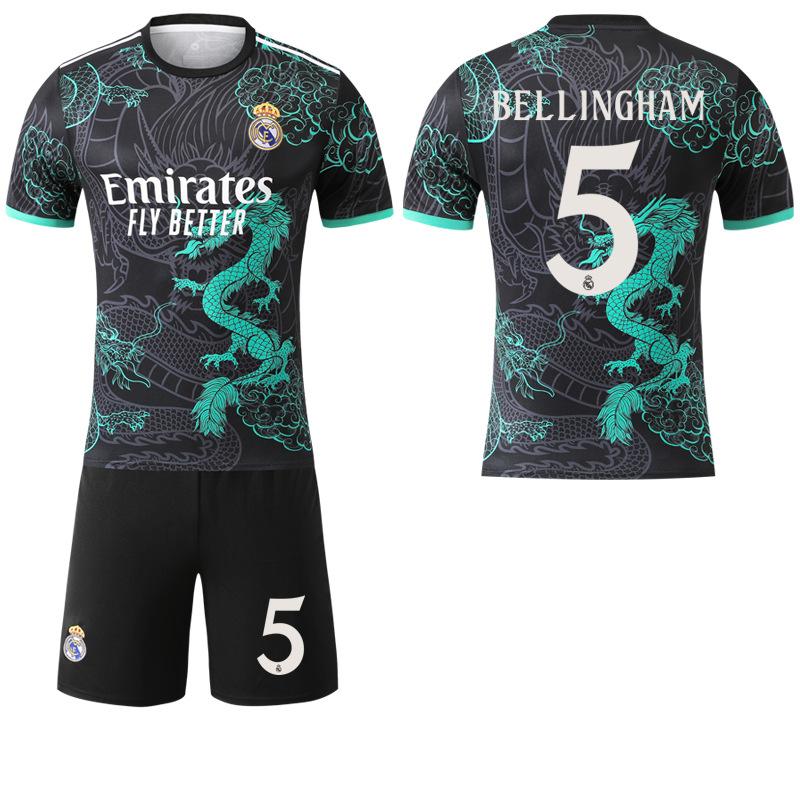 Tonåringar Barn Vuxna Fotbollströjor Sport Träningsset med Strumpor 24/25 Real Madrid Drakmönstrad Dräkt #9 Mbappé