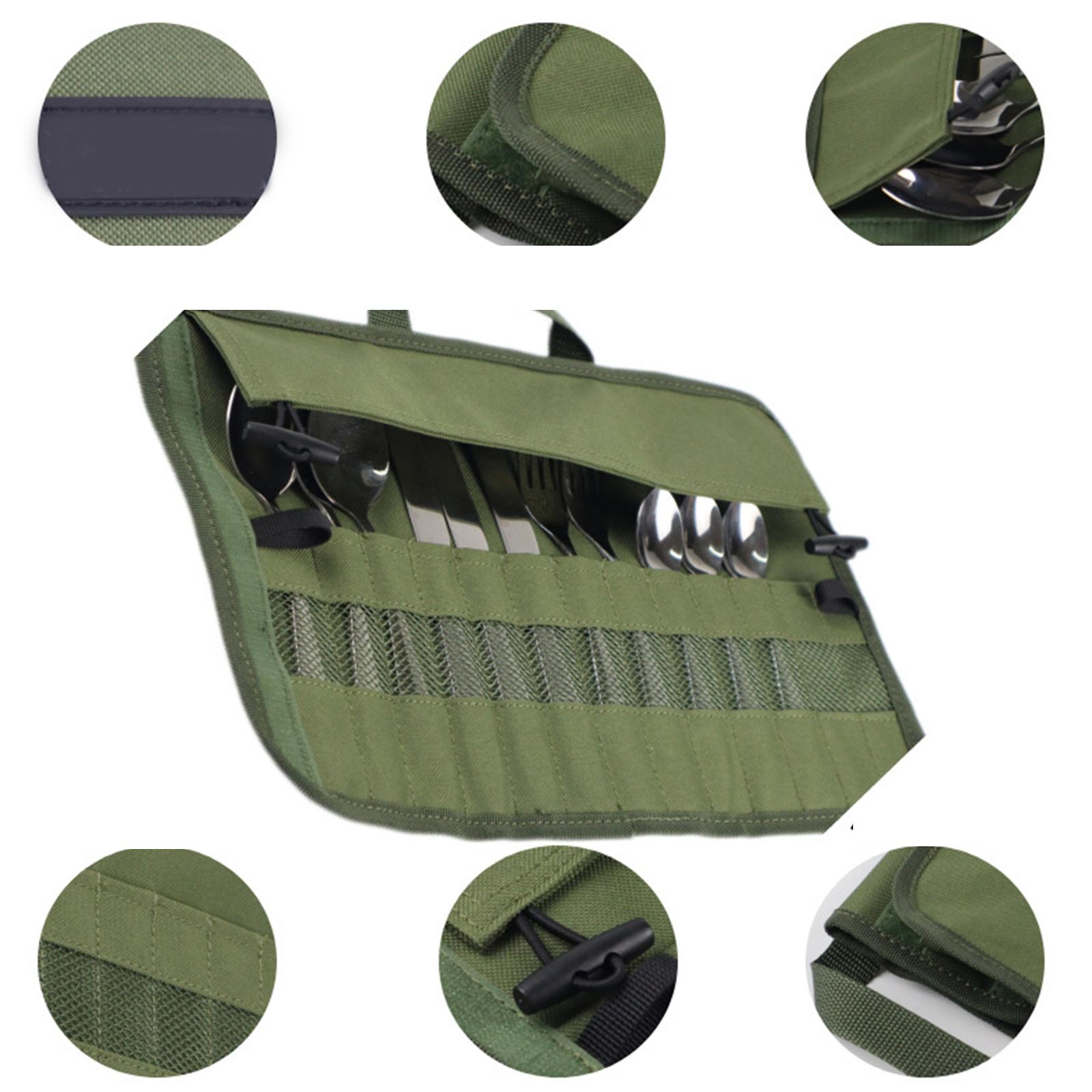 Organisateur Étui à Couverts de Voyage Rangement Vaisselle Sac Suspendu Portable Fourchette Cuillère Sac Roulé Camping Pochette à Ustensiles
