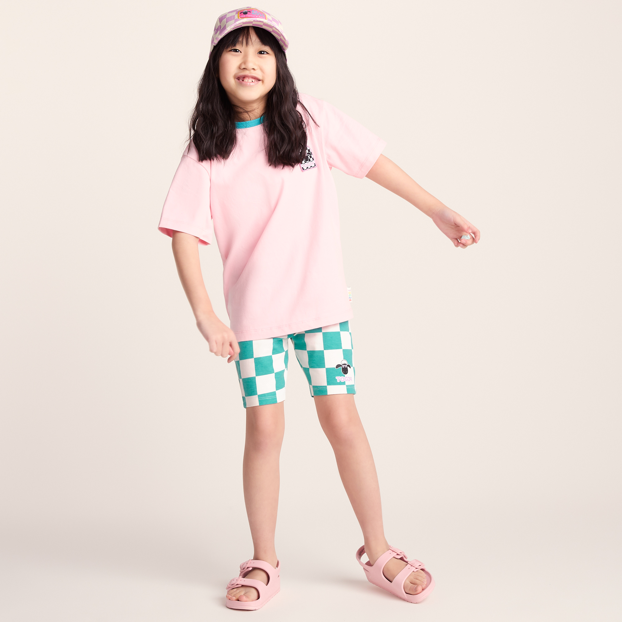TOG24 Kids Unisex Altay Shaun the Sheep Cycling Short - Spearmint/woolly Checkerboard - Green Polycotton - Size 5-6Y