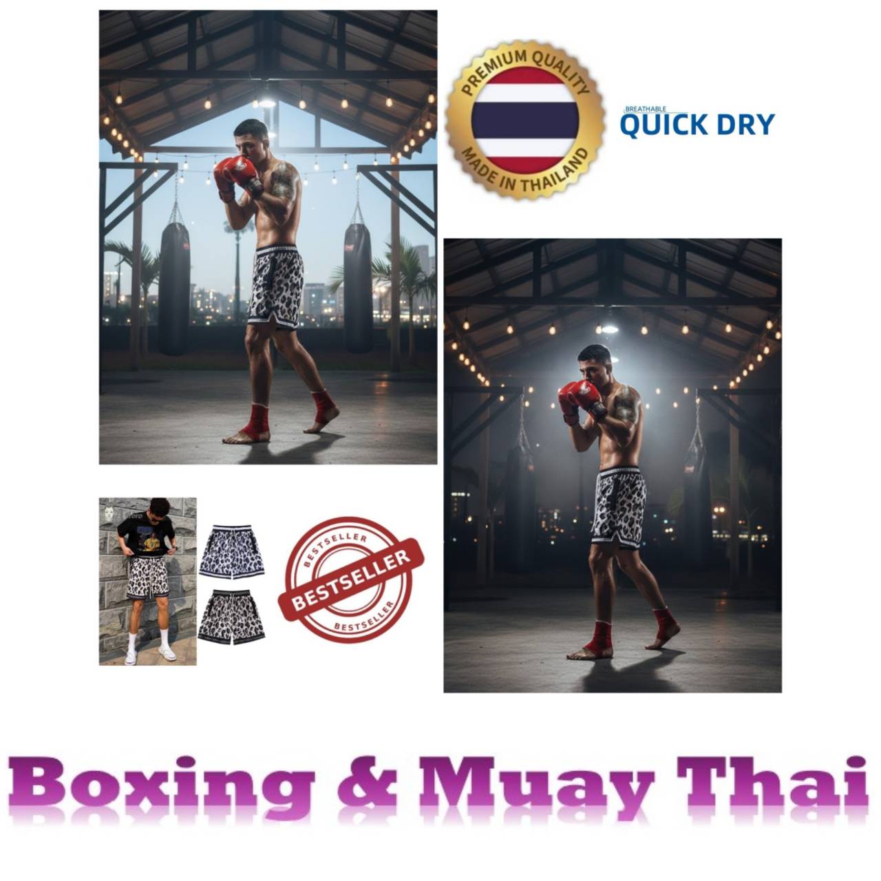 Shorts Imprimé Léopard pour l'Entraînement Muay Thai Boxe Kickboxing Séchage Rapide Art Martial Boxer Unisexe Hommes Femmes Enfant Fitness Gym Sport E