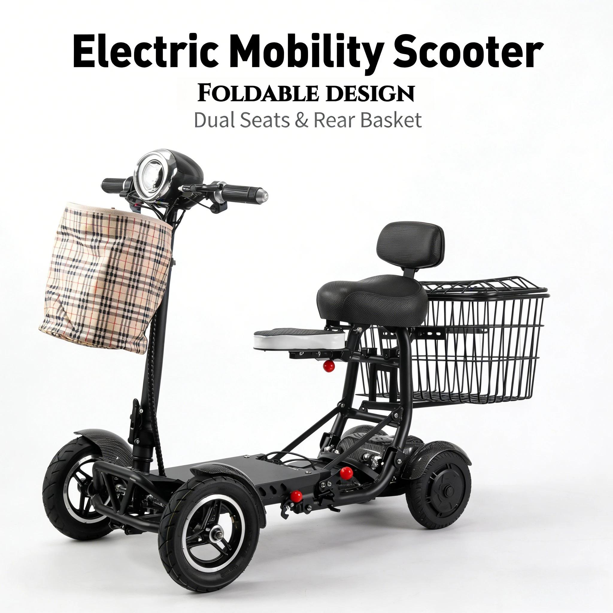 EU-lagerhopslagbar Elektrisk Scooter Vuxen Dubbelmotor 4 Hjul Hopfällbar Elektrisk Mobilitetsscooter För Äldre Personer svart