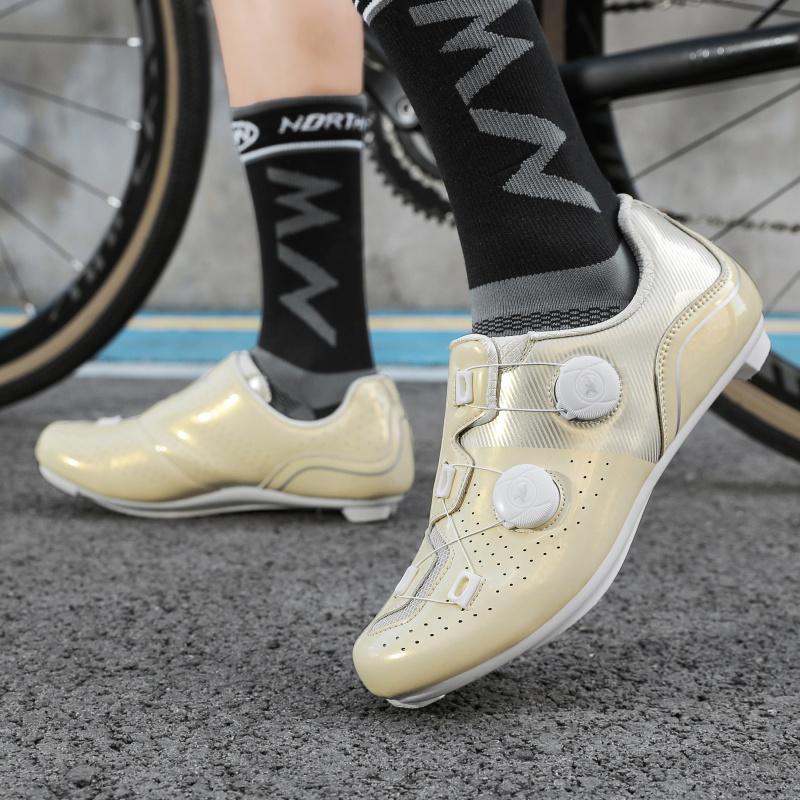 Profesjonelle Herre Sykkelsko Pustende Hard-Sålede Booster Landeveissykling Låsesko Damer SPD Landeveissykling Konkurransesko gull