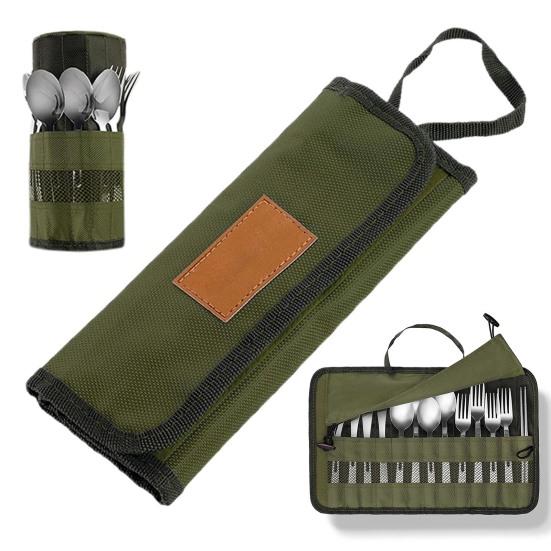 Buiten Bestek Opbergtas Stofdicht Draagbaar Reizen Kamperen Picknick Eetstokjes Vork Lepel Keukengerei Organizer Oprolbare Tas groen