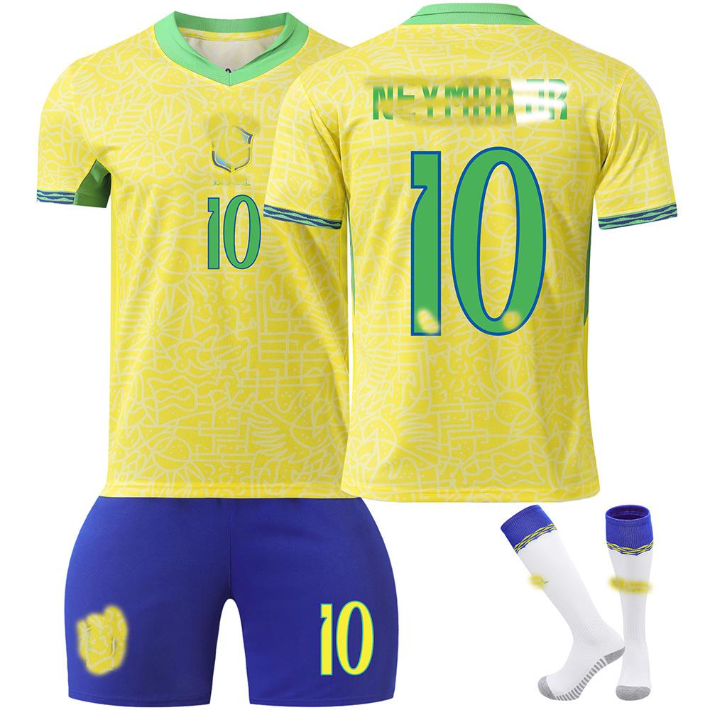 Jugendliche Kinder Erwachsene Fußballtrikots Sport Trainings Trikot Set mit Socken 24/25 Brasilien Heim #10 Neymar JR