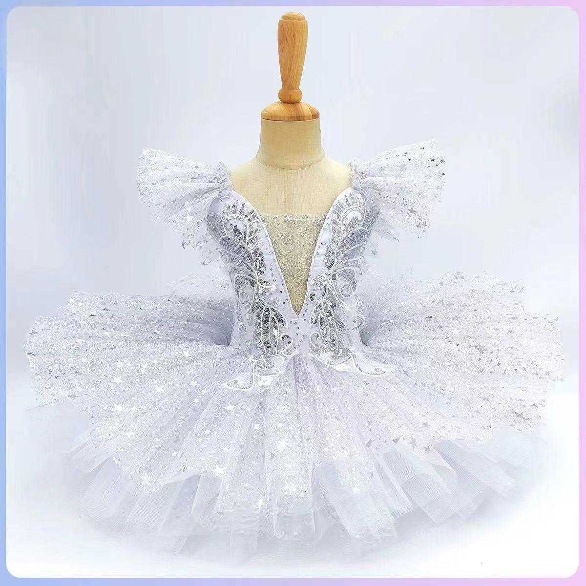 Robe de Ballet à Paillettes pour Enfants Vêtements de Spectacle Argenté Jupes de Danse Moderne pour Filles Tutu de Ballet pour Enfants Robe de Princes