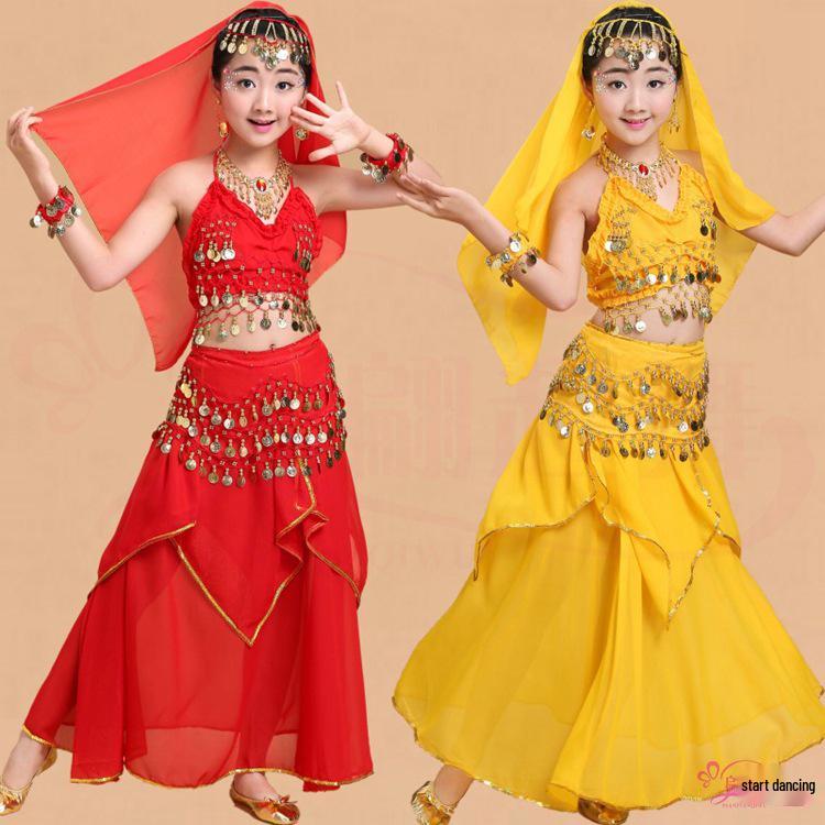 Costume de danse indienne pour enfants - Tenue de danse du ventre et de spectacle ethnique pour filles 135-150cm