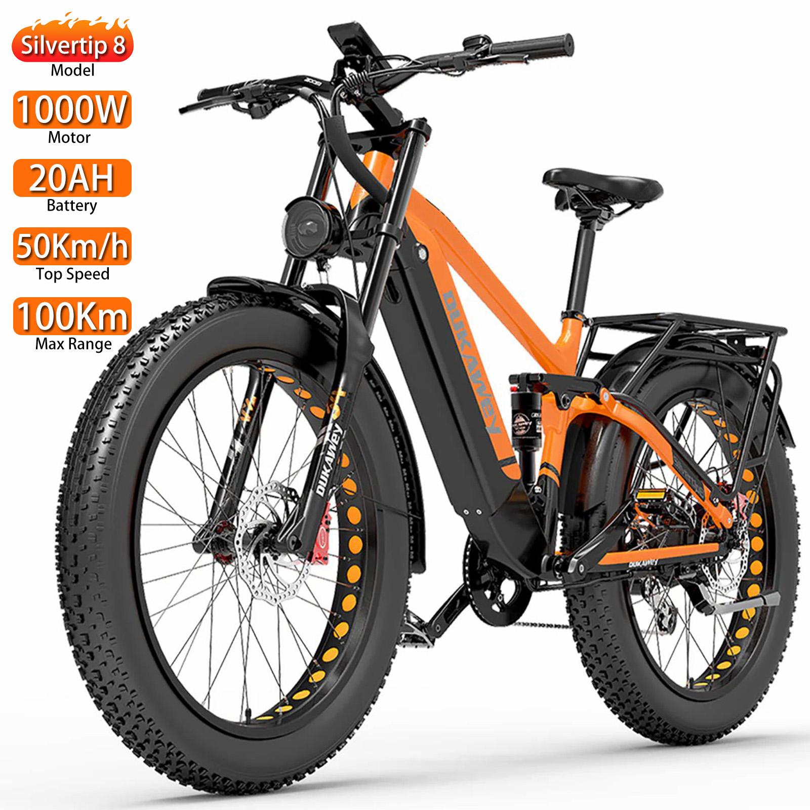 Elektrofahrrad Dukawey Silvertip8 1000W Motor All-Terrain Elektrofahrrad 52V 20AH 26 Fat Tire Vollgefedert E-Bike Max. Last 150kg orange
