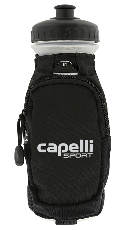 Capelli Sport Grab and Go Preformance Waterbottle Pack with Adjustable Hand Strap. Zippered Pocket. JO card and Reflective Accents with 500ml HDPE bottle