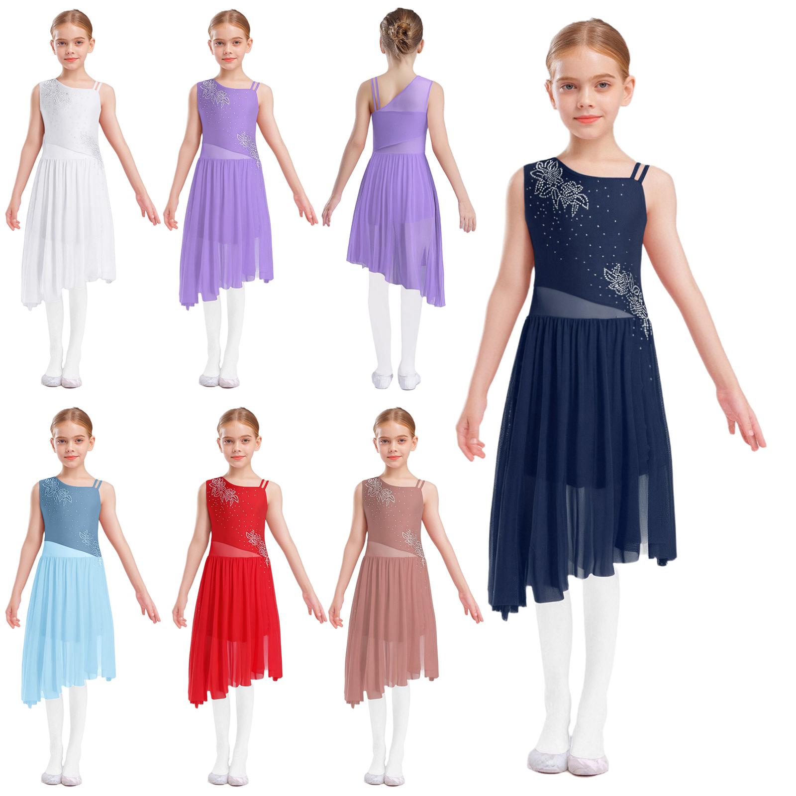 Costumes de danse lyrique en mousseline de soie pour enfants filles, sans manches, robe justaucorps à blocs de couleurs, robes contemporaines modernes