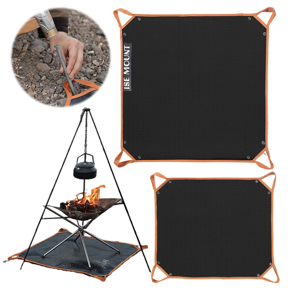 Camping brannsikker matte Varmebestandig camping bålpanne matte Dobbeltsidig silikon Sammenleggbar vedsekk for utendørs piknik BBQ Svart