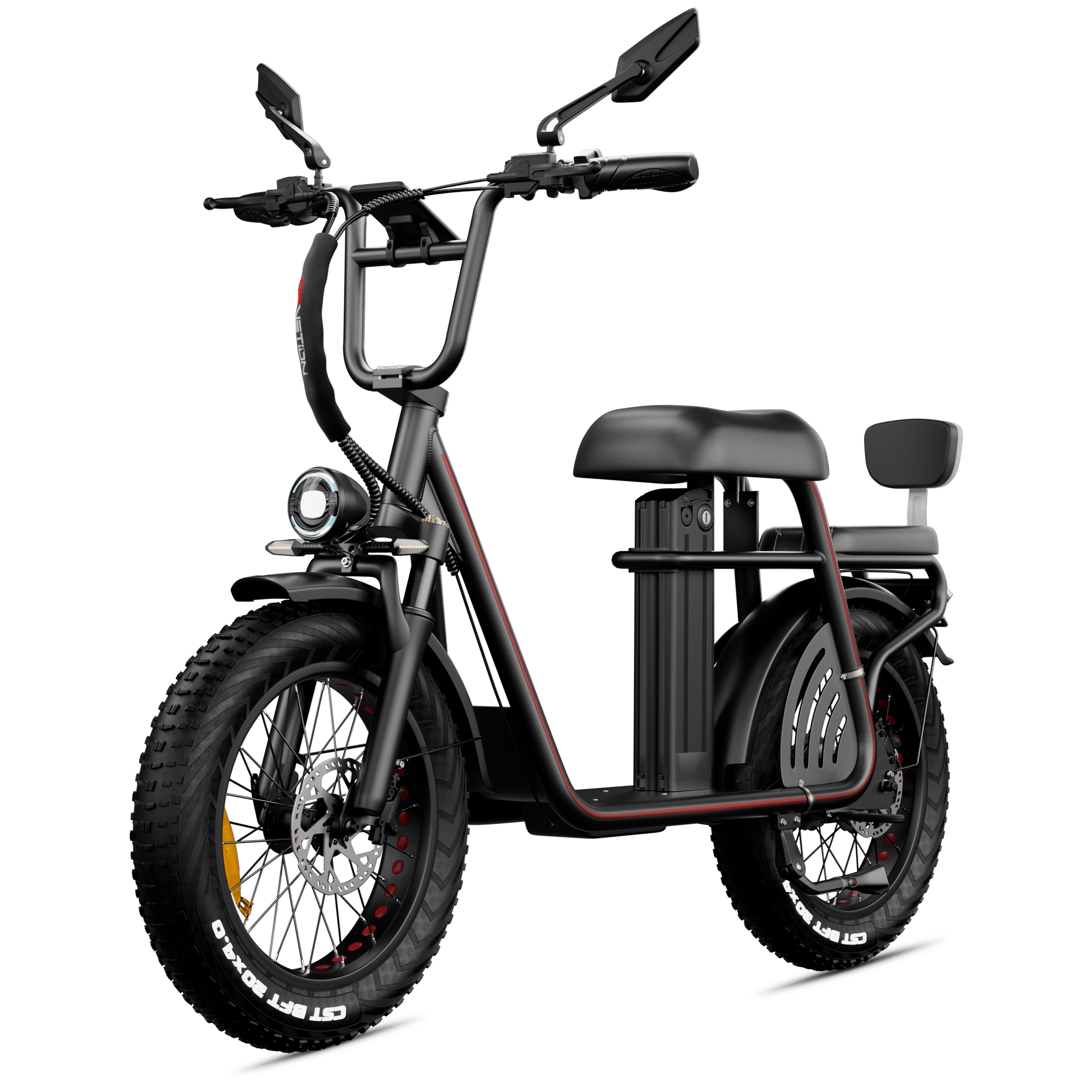 URLIFE E20 Urban Pendling Elcykel Med Sits för Passagerare 48V13Ah Batteri 500W Motor Elcykel 20 Tum Feta Däck Utomhus Cykling E-cykel svart