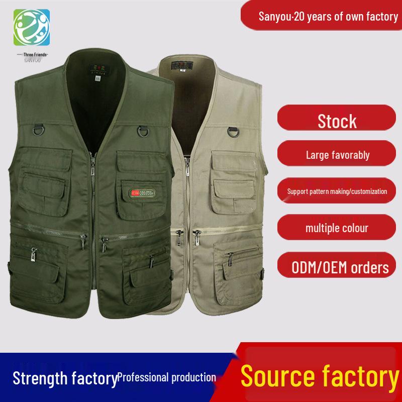 Arbeitsweste mit mehreren Taschen Herren Dünne Outdoor-Angelweste Weste Herren Werbung Pferdeklippjacke