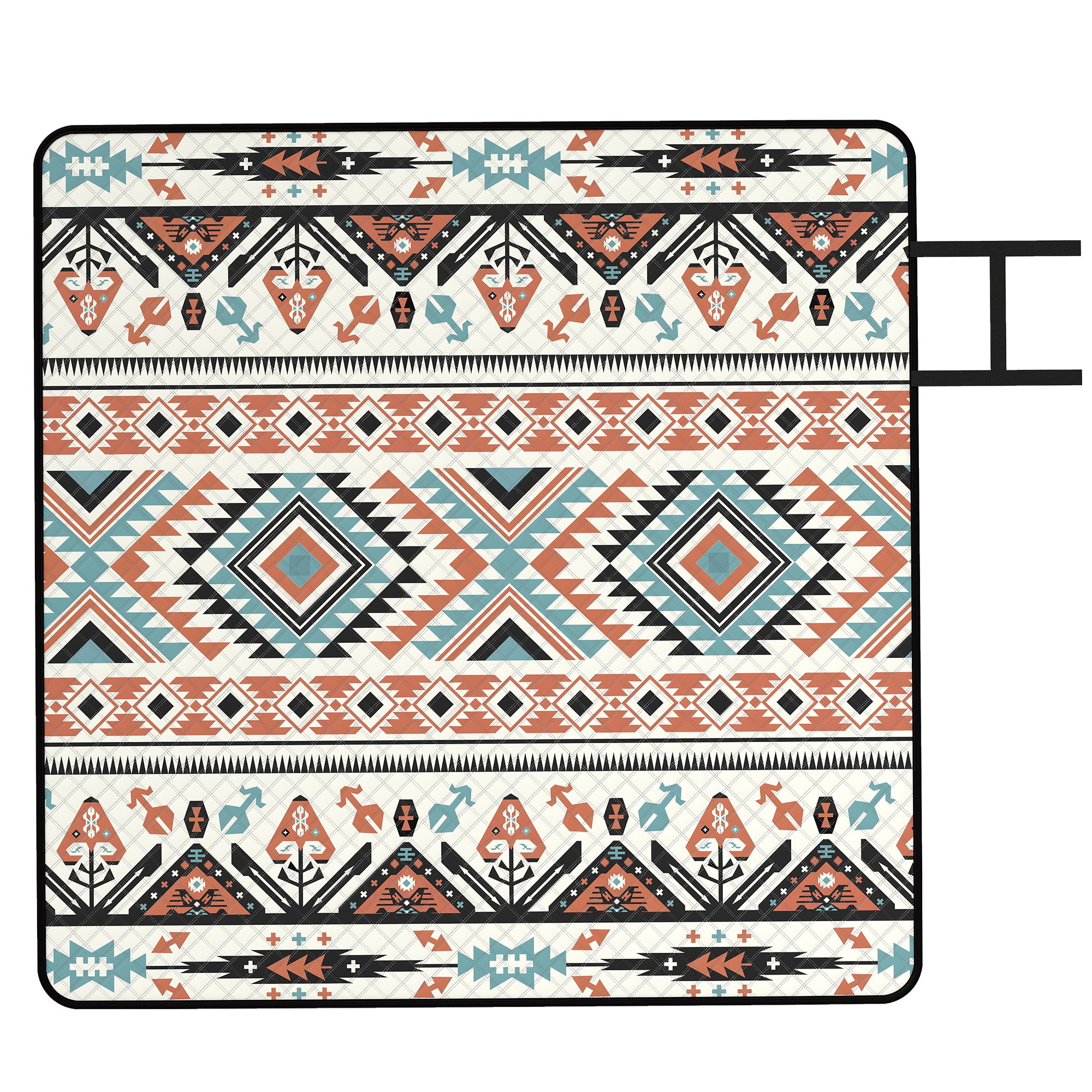 Outsunny Picnic Blanket, 200x200CM Large Beach Blanket Outdoor Picnic Mat with Integrated Strap for Camping, Mix-Colour