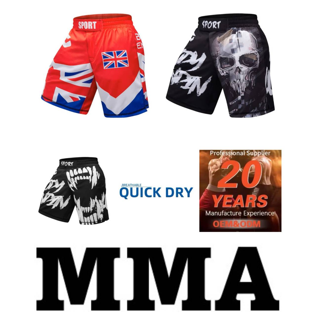 Crâne Britannique MMA Muay Thai Kickboxing Boxe Shorts Art Martial UFC Boxeur Unisexe Homme Femme Pantalon Combat Fitness Entraînement Gym Sport Worko