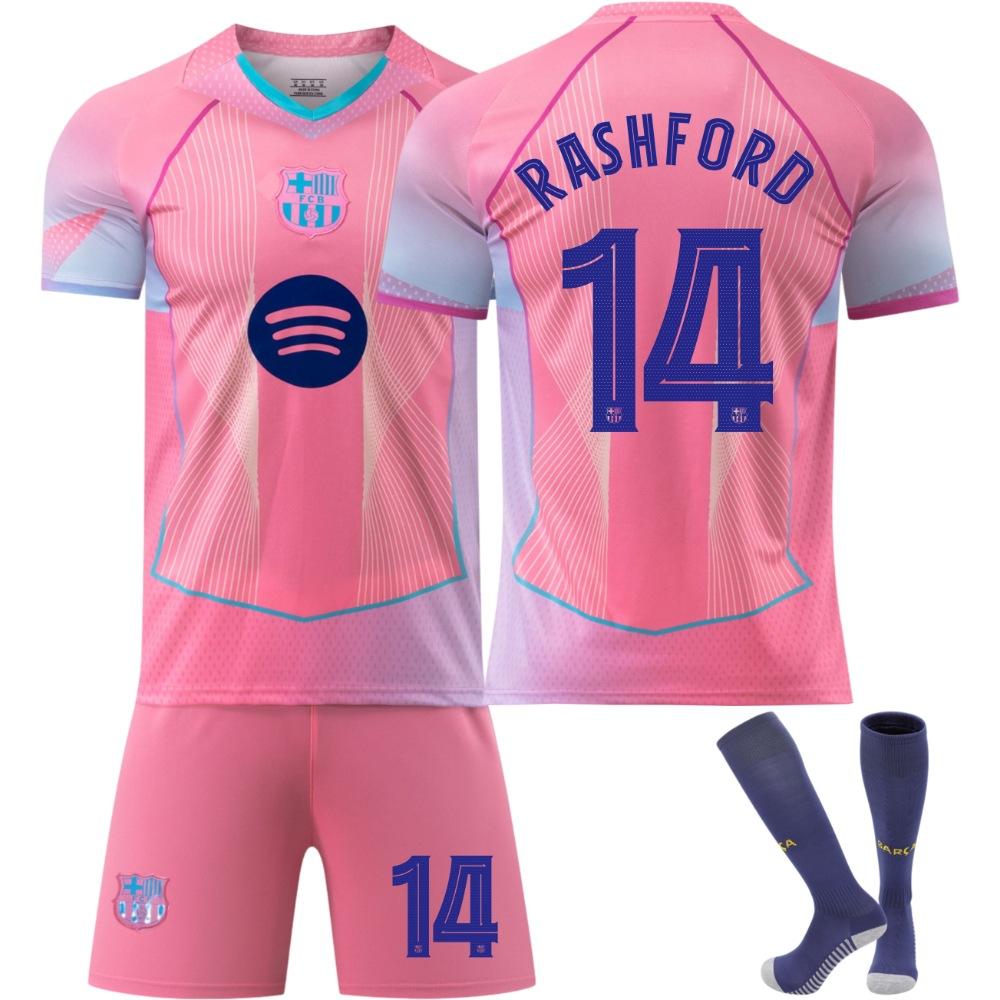 25-26 Barcelona UEFA Champions League Roze Voetbalshirt voor Kinderen en Volwassenen RASHFORO #14