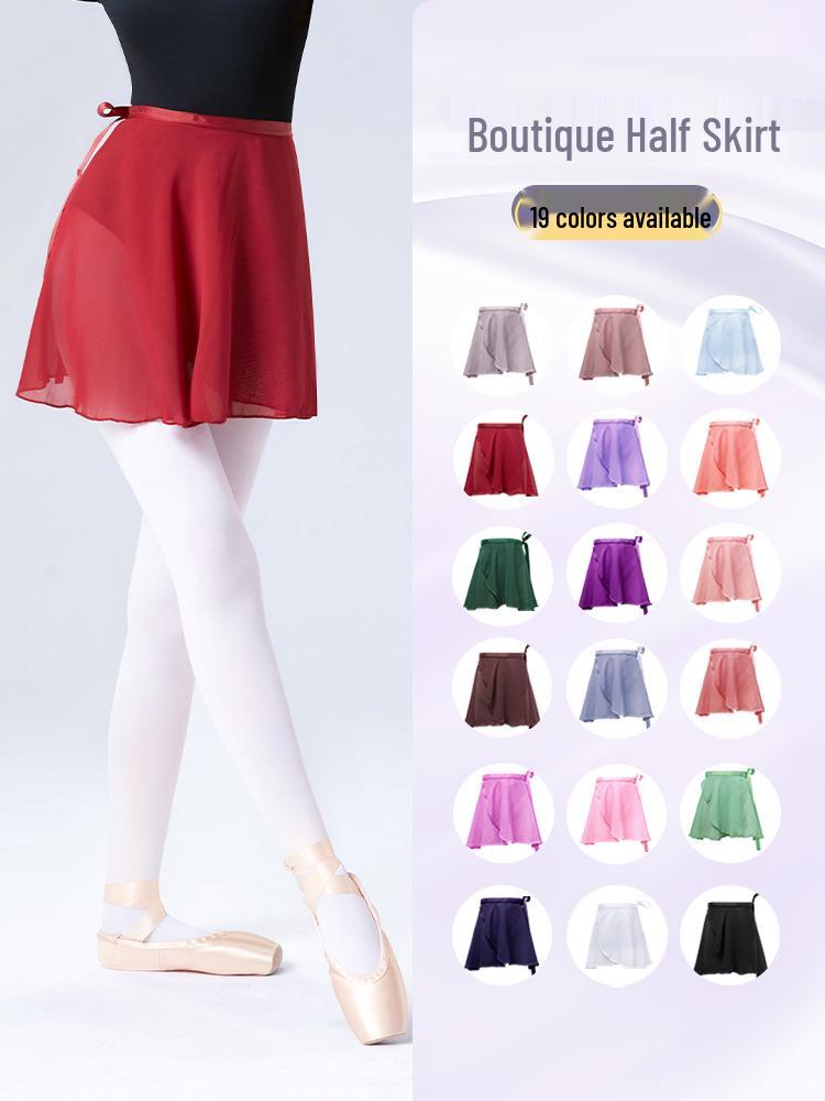 Ballett Übungsrock aus Chiffon für Damen - Kurz, Einteilig, Halblanger Gymnastikkunst-Rock cm