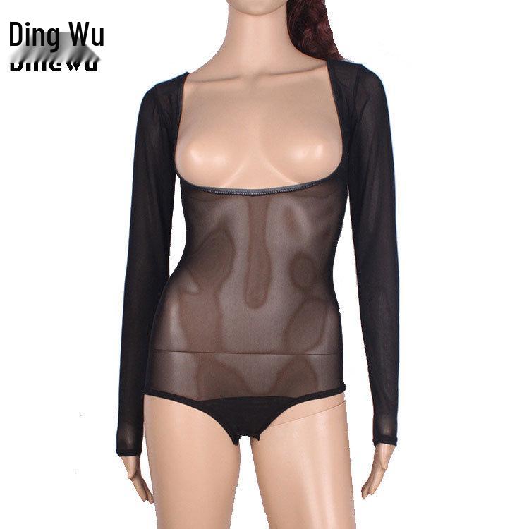 Justaucorps de Danse Gymnastique Féminine Manches Longues, Justaucorps Corps Entier à Strass Étincelants avec Maille Transparente & Patchwork Color Bl