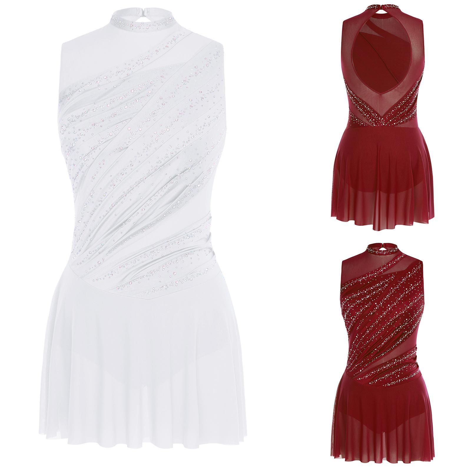 Dame Gymnastikk Ballett Lyrisk Dans Draktdrakt Kjole Rhinsteinpyntet Nettskjørt Kjole Moderne Samtidsdans Kostyme cm burgunder farge