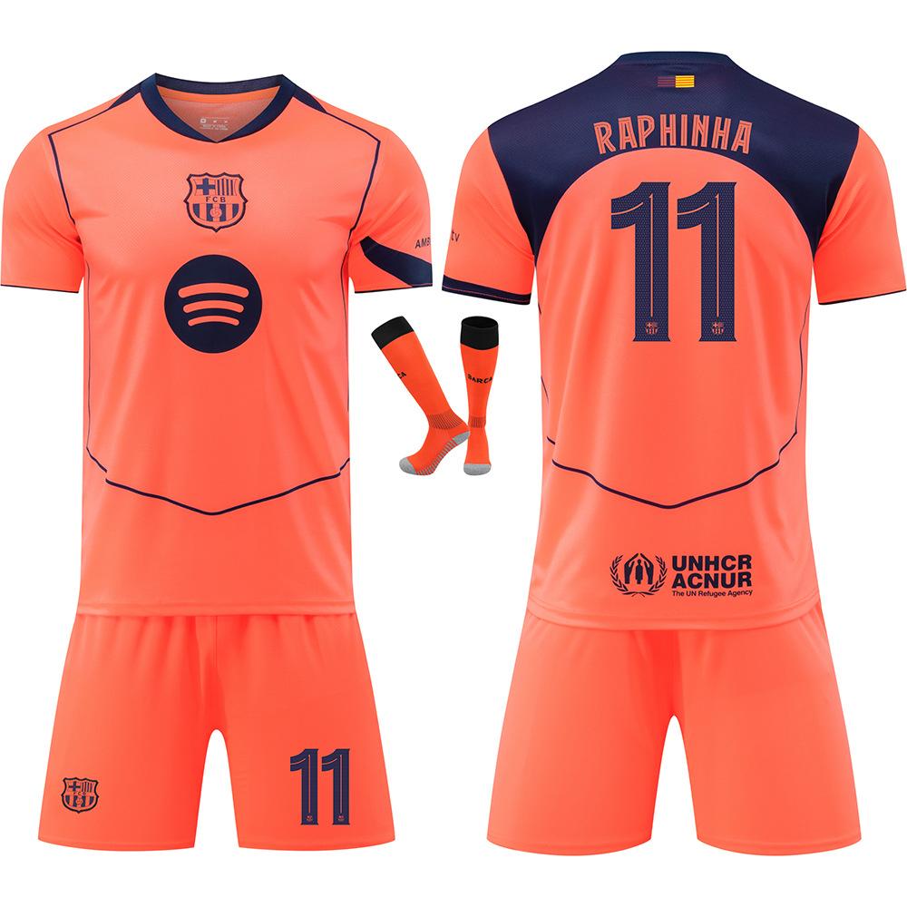 25-26 Barcelona UEFA Champions League Oranje Voetbalshirt voor Kinderen en Volwassenen RAPHINHA #11