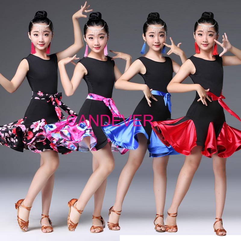 Mädchen Blume Rüschen Ballsaal Latein Tanzkleidung Kleid Wettbewerb Mädchen Kind Salsa Tango Cha Cha Aufführung Übungsrock cm