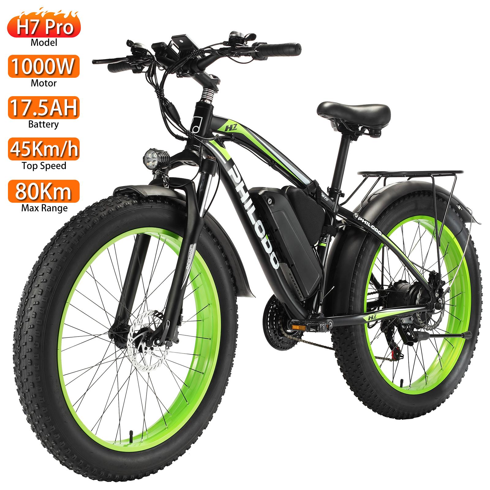 Elektrofahrrad Philodo 26 1000W Motor All-Terrain Ebike 48V 17.5AH 21 Gänge Erwachsenen Fat Tire Elektrofahrrad Grün H7 Pro blau